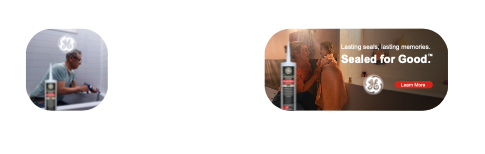 As Senior Designer at Sales Factory, I designed consumer-facing creative for GE Caulks & Sealants across enhanced content, A+ modules, landing pages, and print. The work spans multiple product lines Silicone, PSM, and the broader DIY sealants portfolio in both Kitchen & Bath and Window & Door applications.